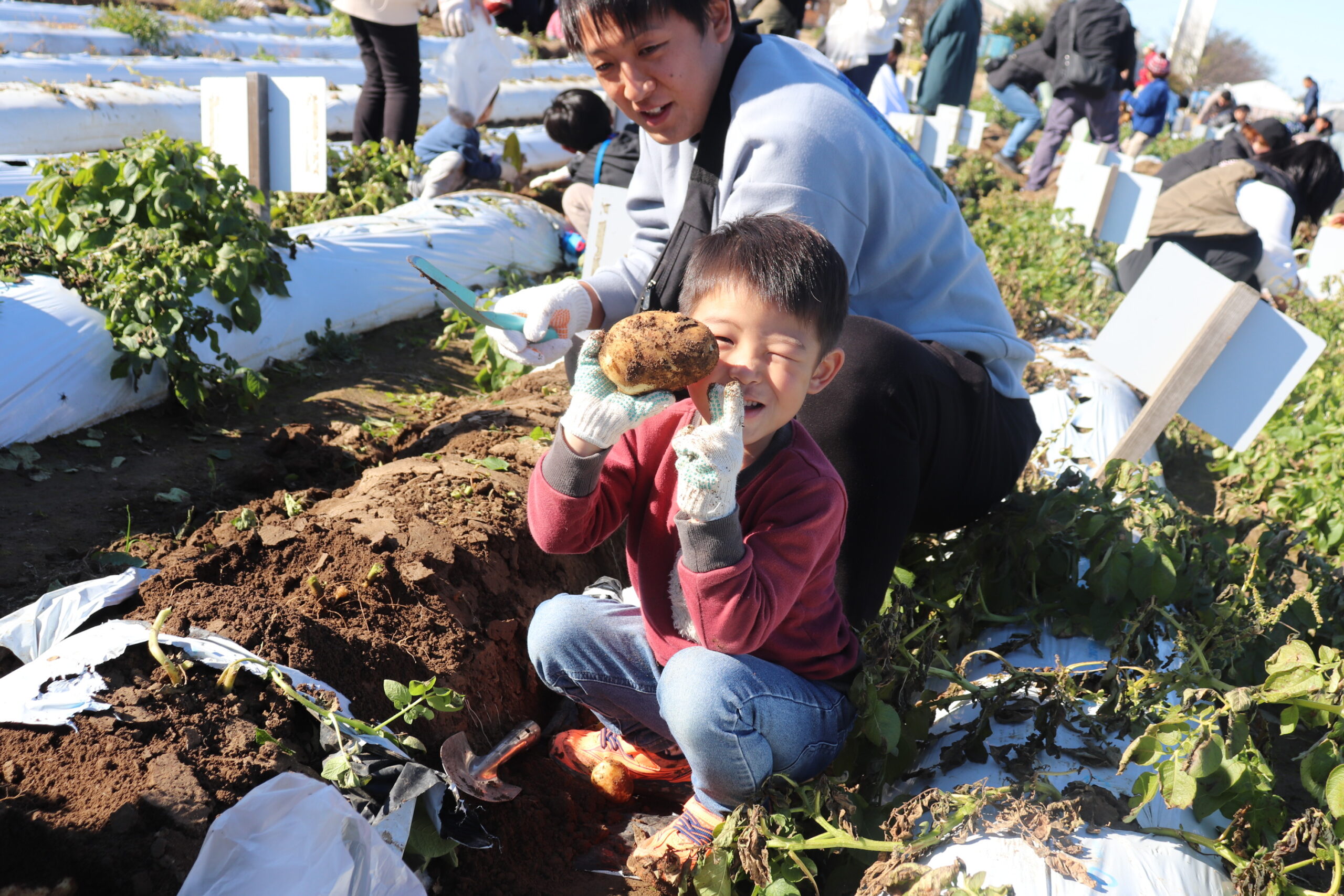 シートをはがしたら、おいも掘り開始✨