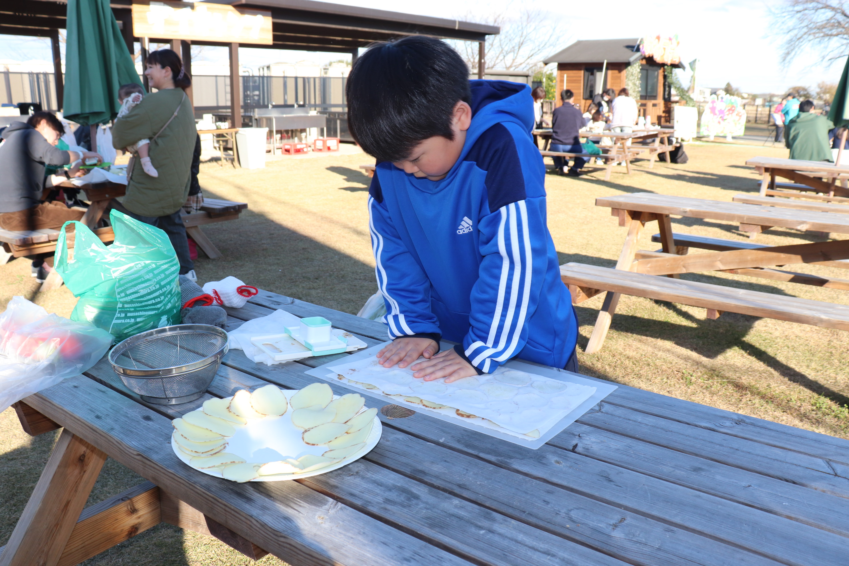 みんなで役割分担しながら、ポテチの準備をしていくよ💪