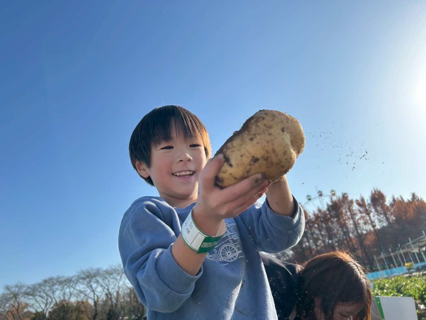 採れたて大きなおいもといっしょに元気にはいポーズ📷🤩