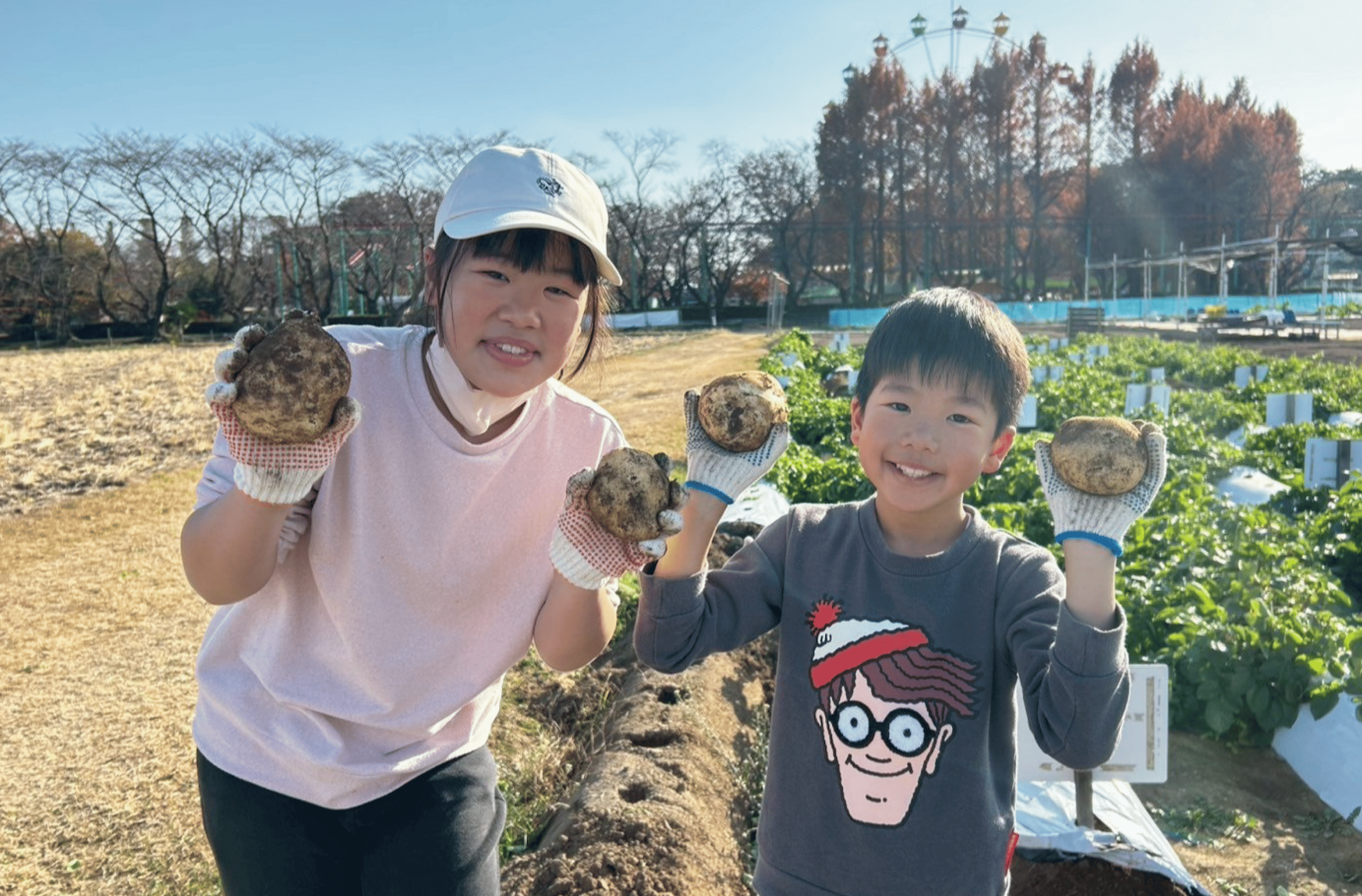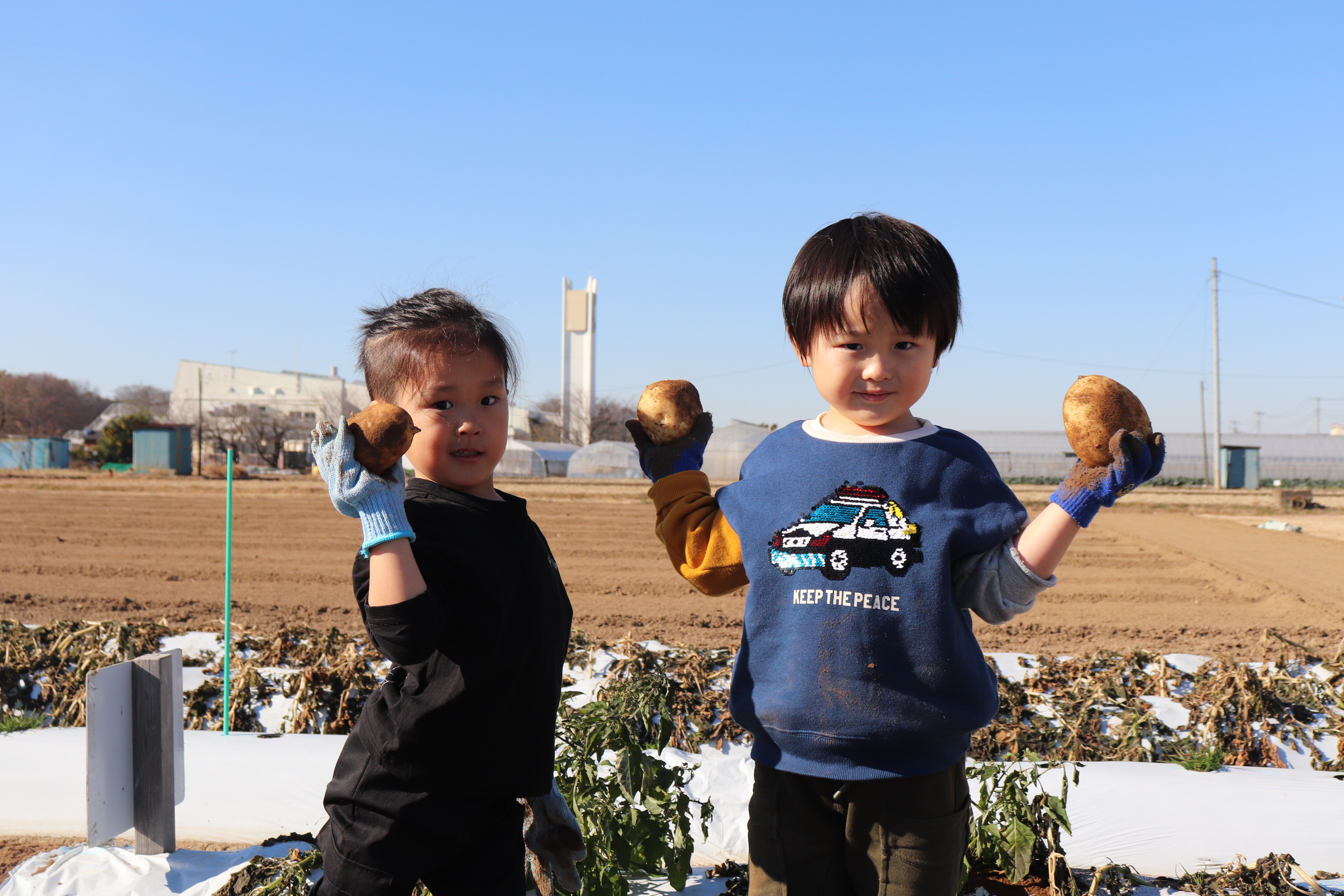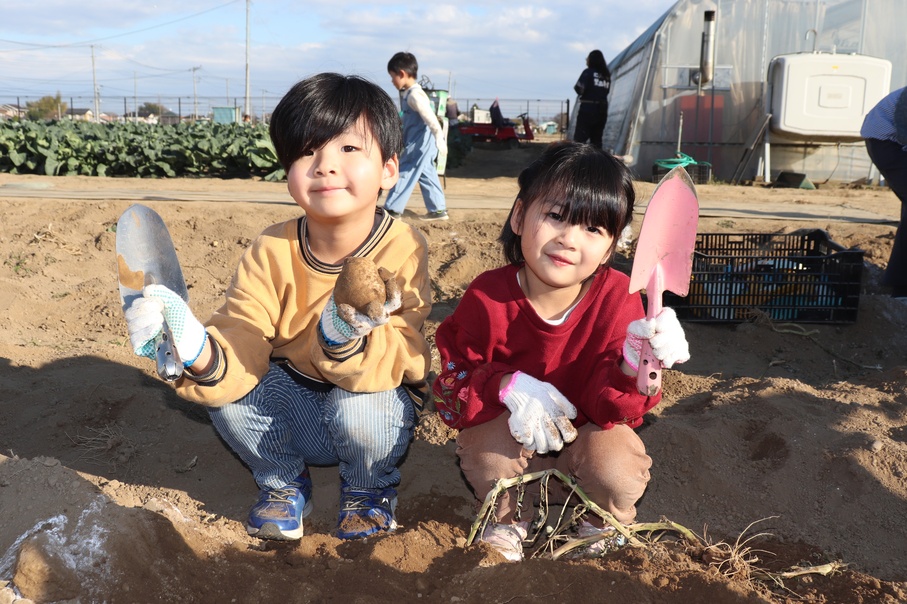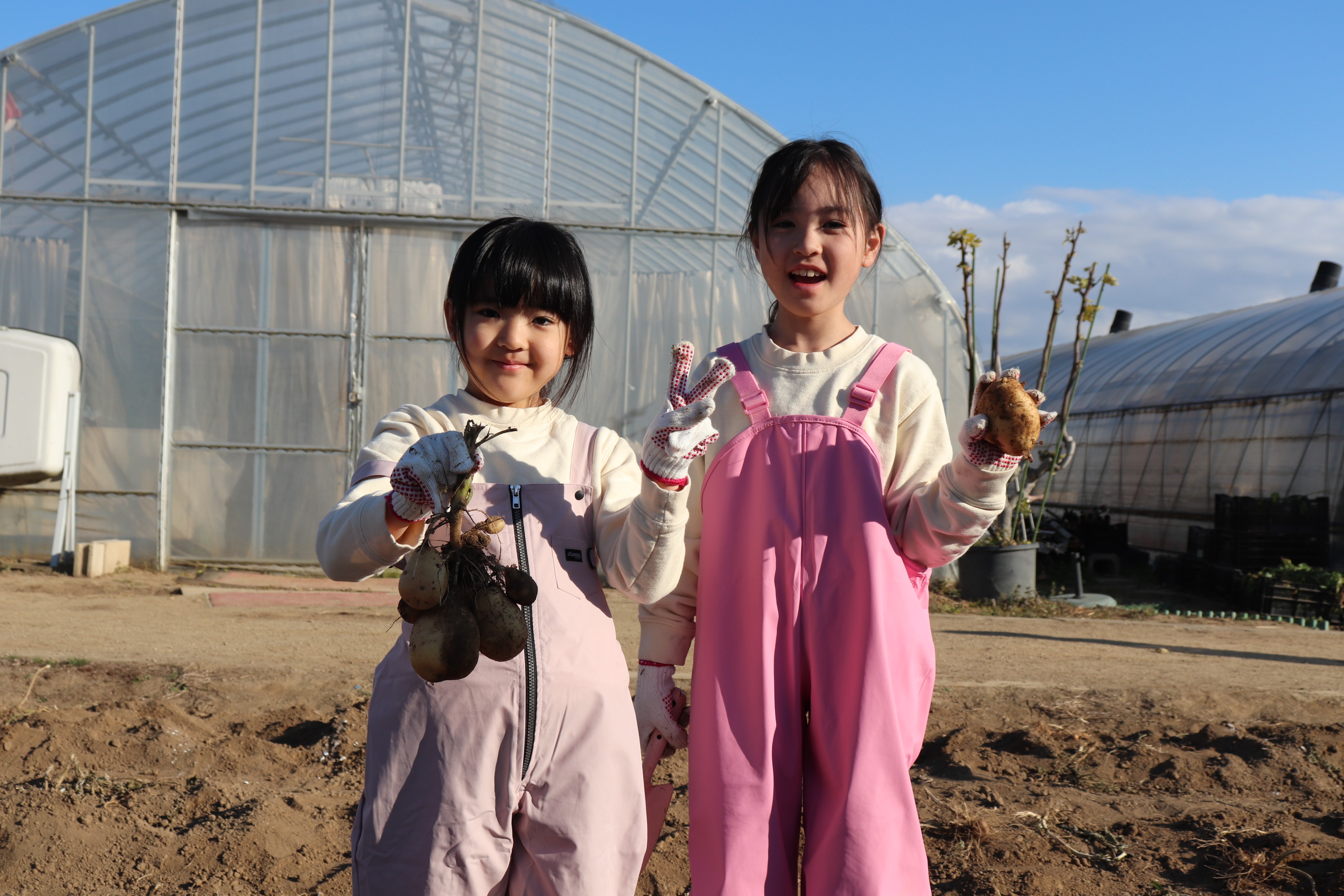 お友だちと一緒にじゃがいも収穫♪かっこいい決めポーズ😎