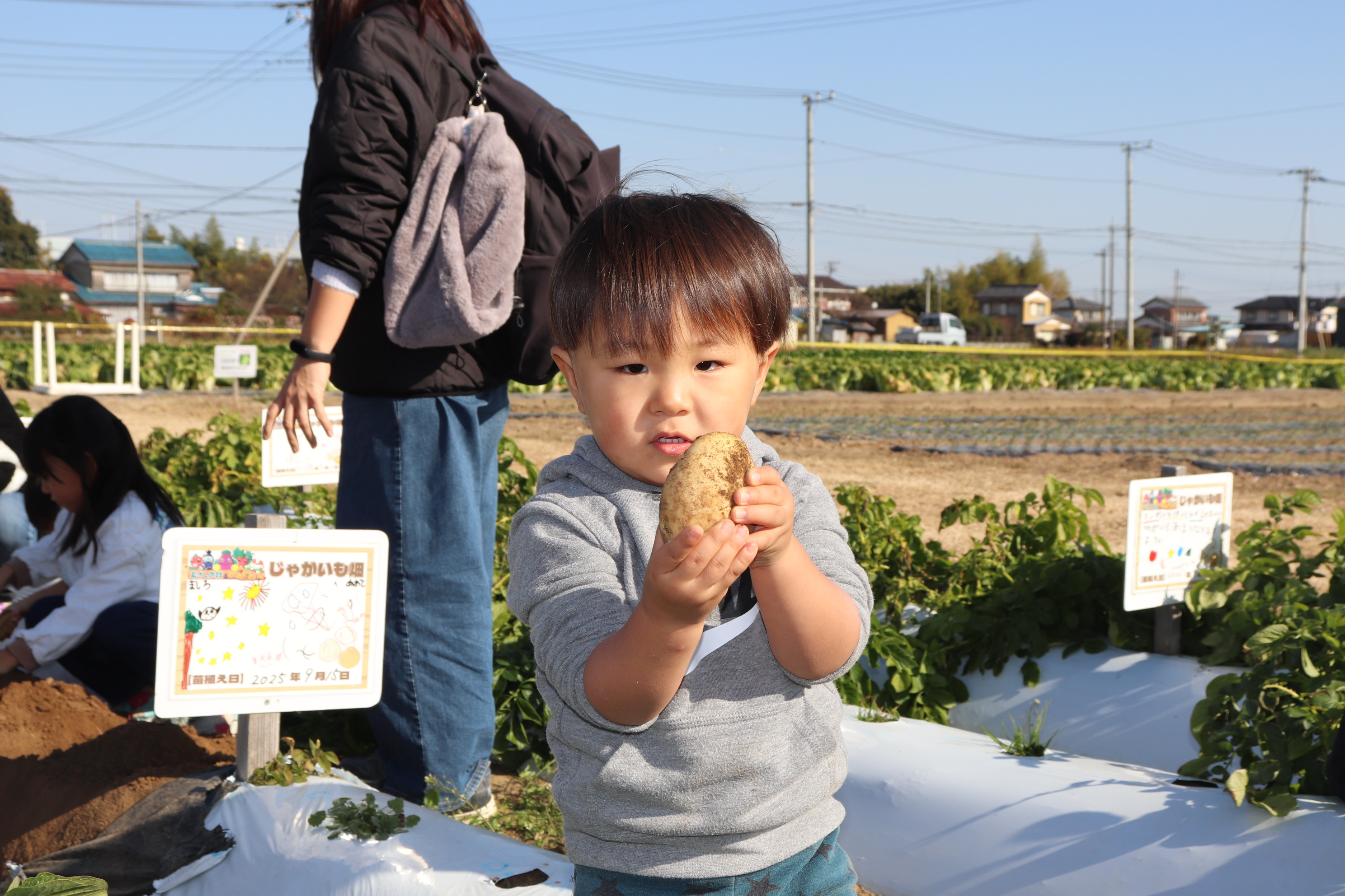 【秋じゃがいも作り体験】は、夏の終わりに畑の目印となる看板作りと種芋植えを行い、秋に収穫を行うイベントとなっております😊