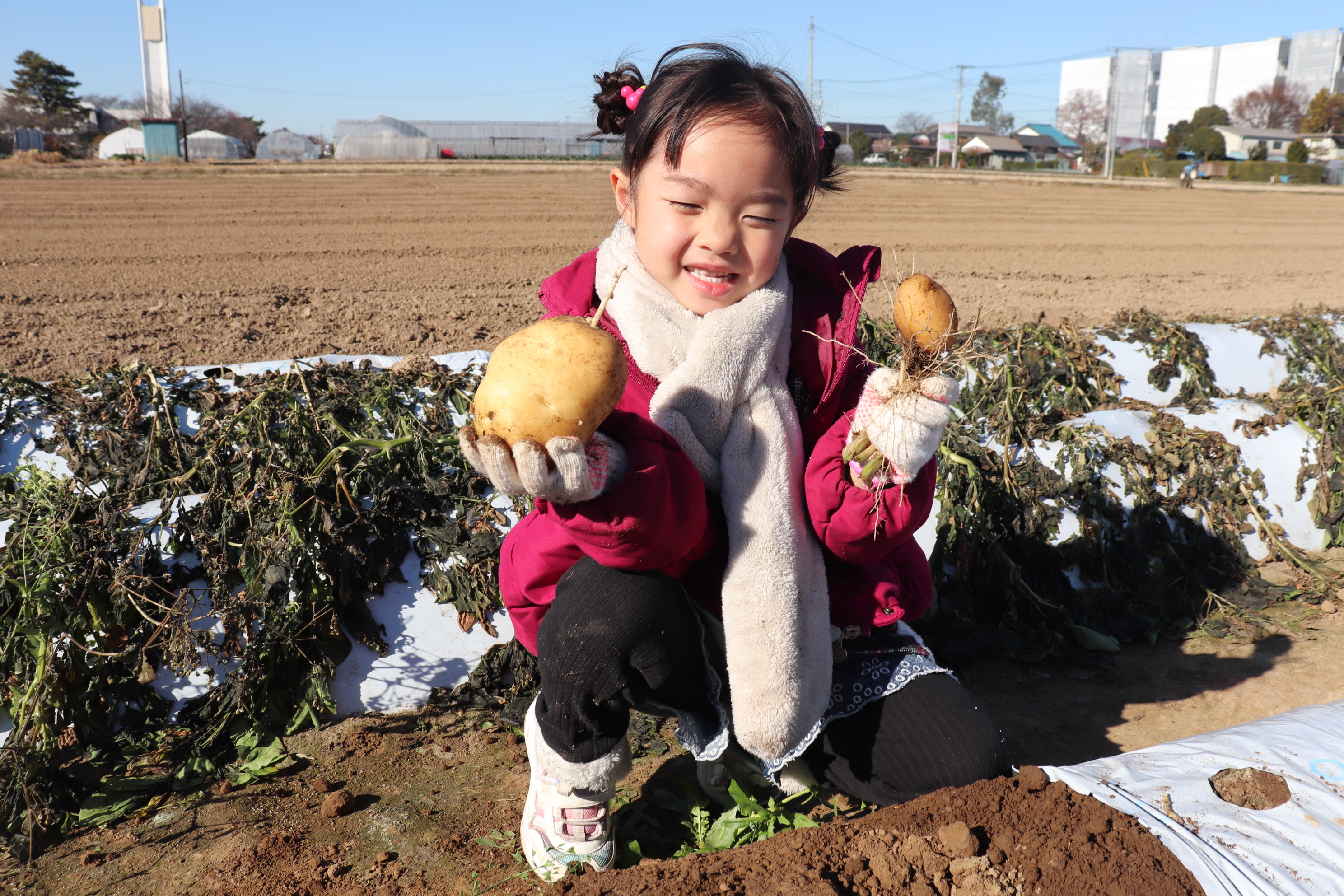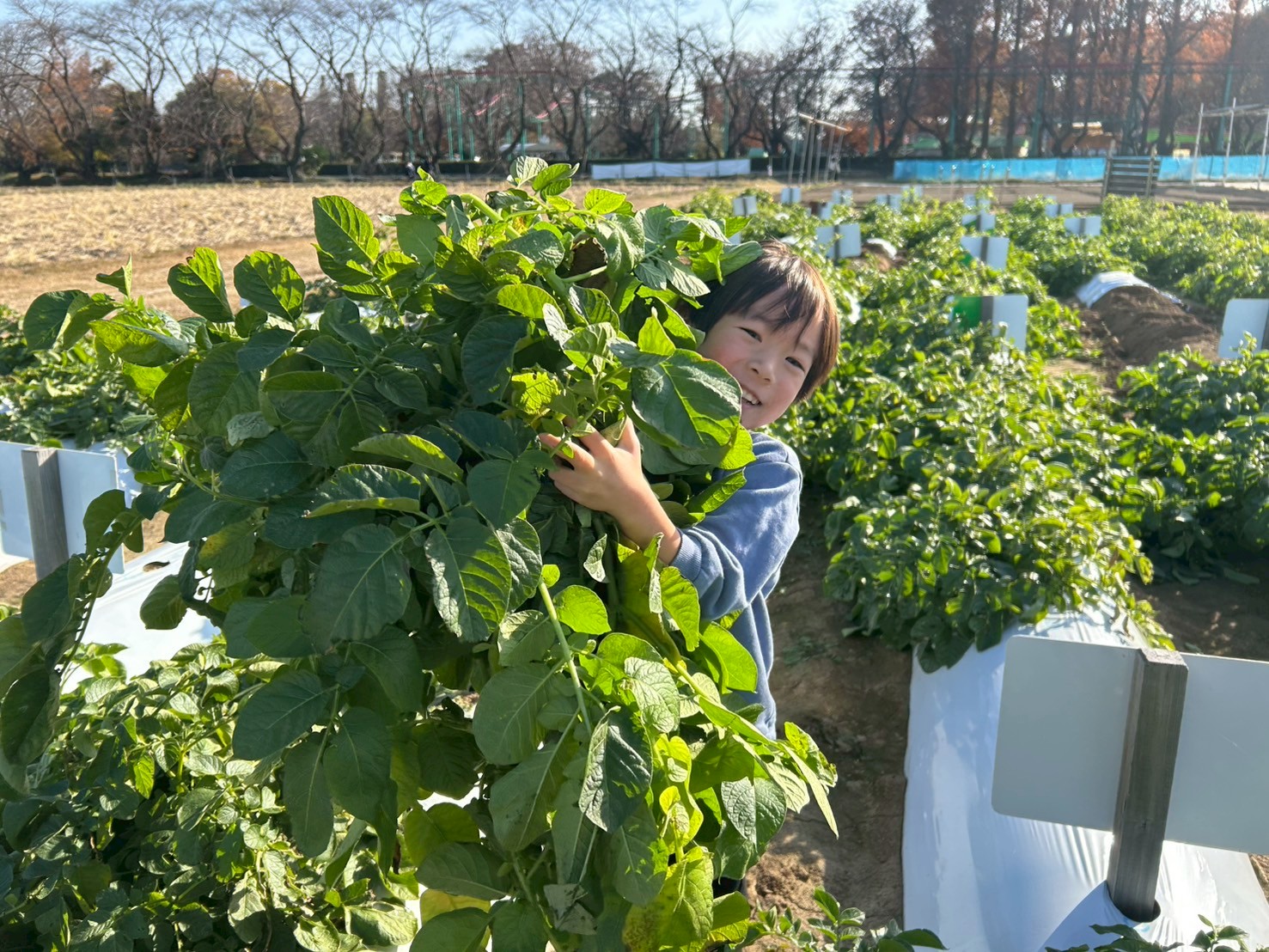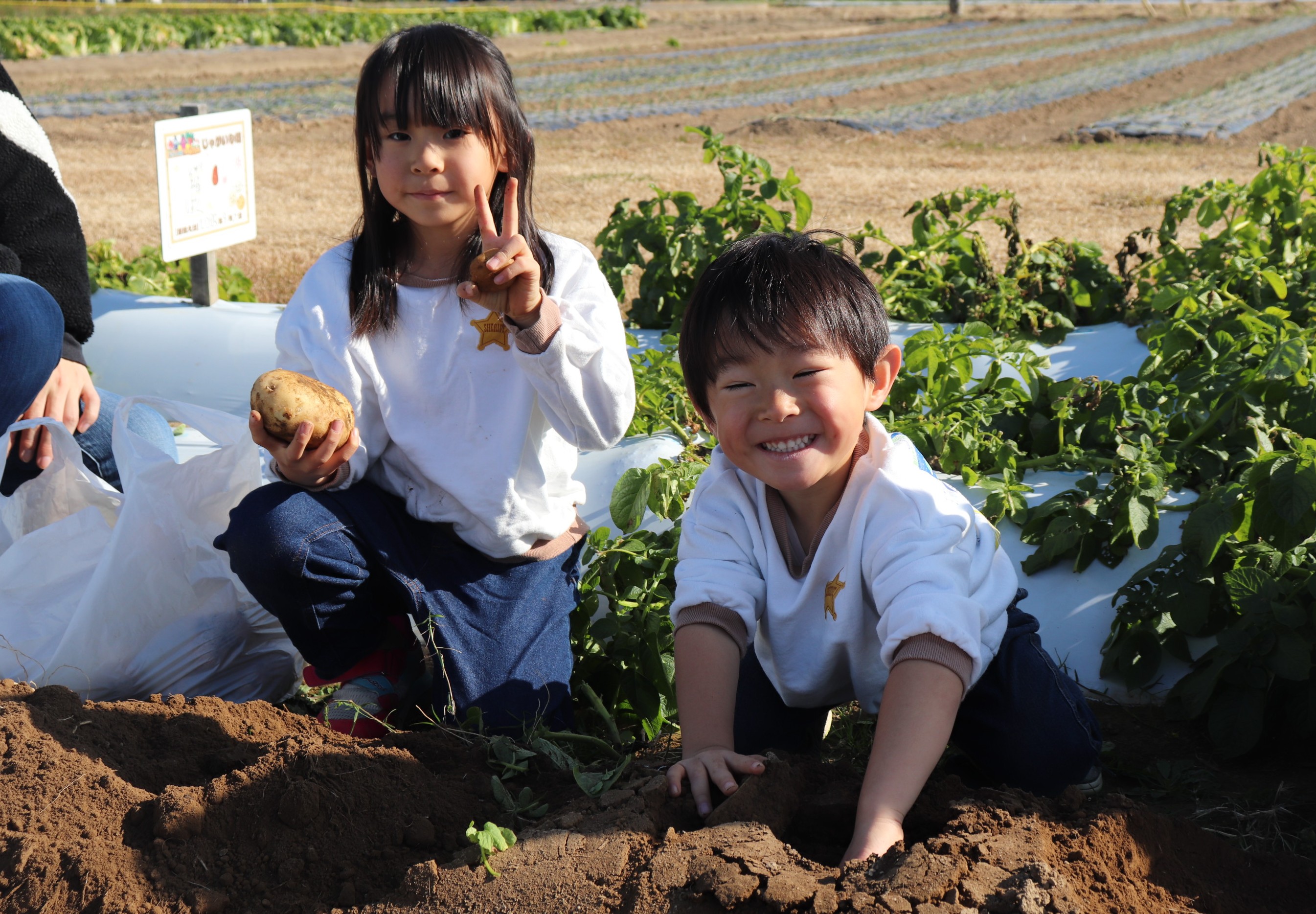 白いシートははがしたら、じゃがいも掘りスタート🎉
