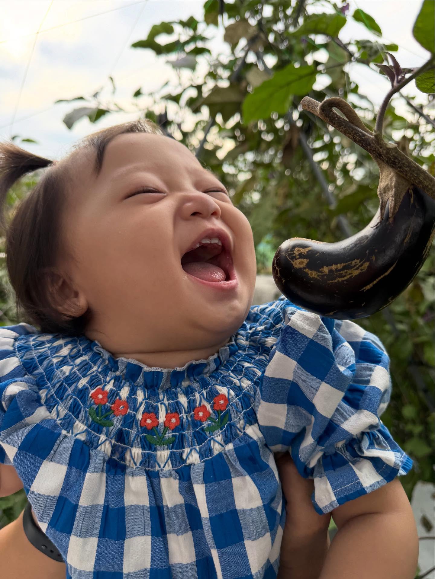 大きくお口を開けて、採れたてナスを食べちゃいそう😋