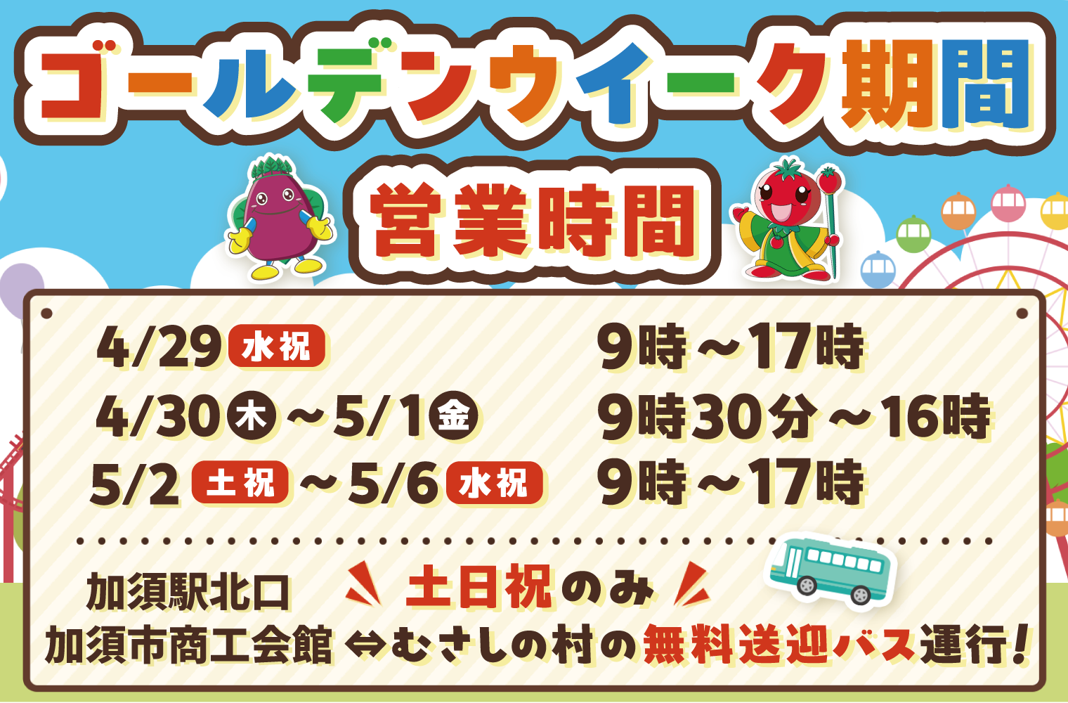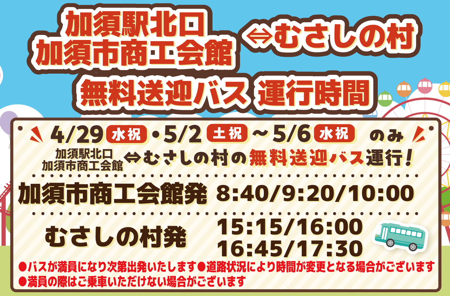 【加須駅⇔むさしの村 無料送迎バス】