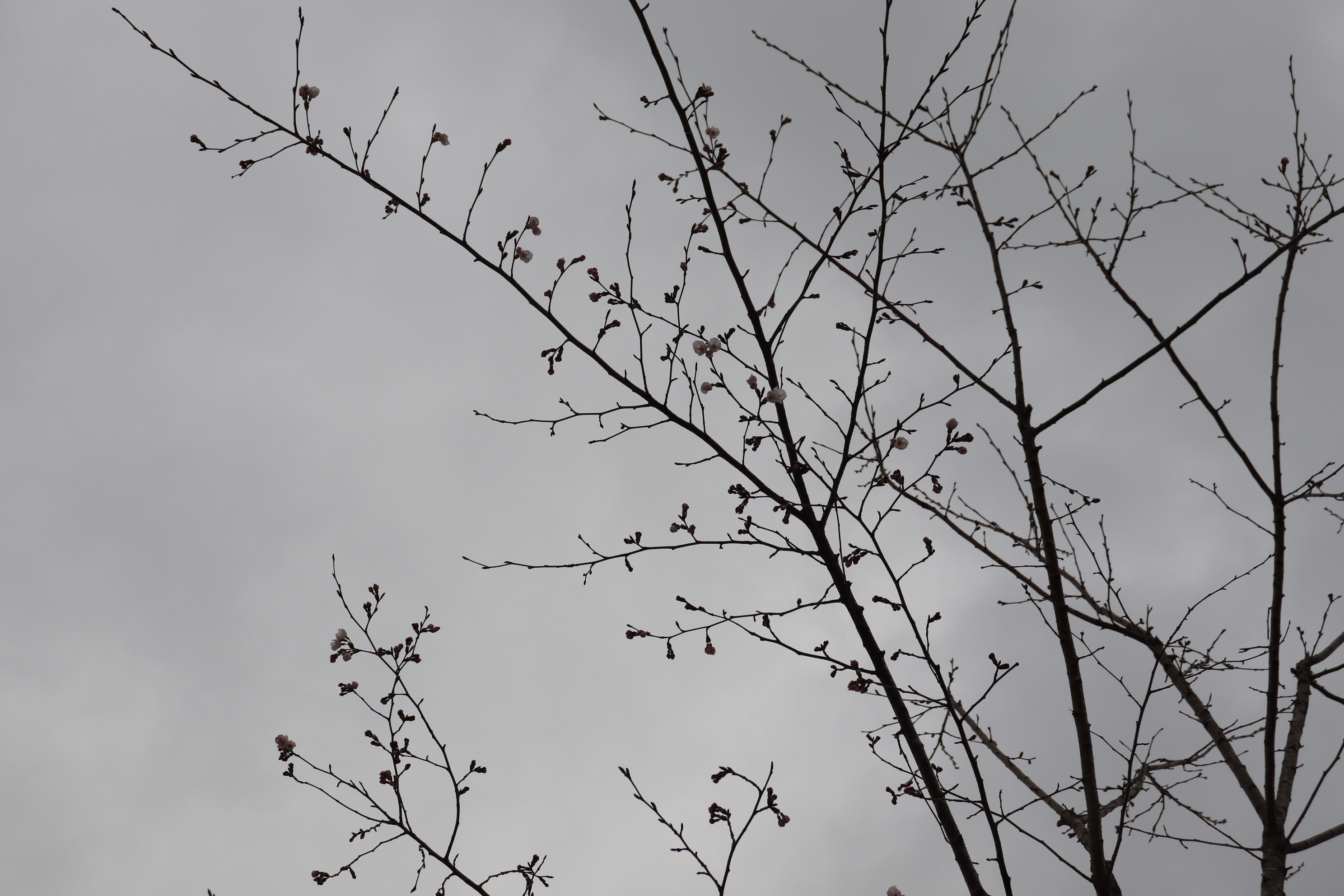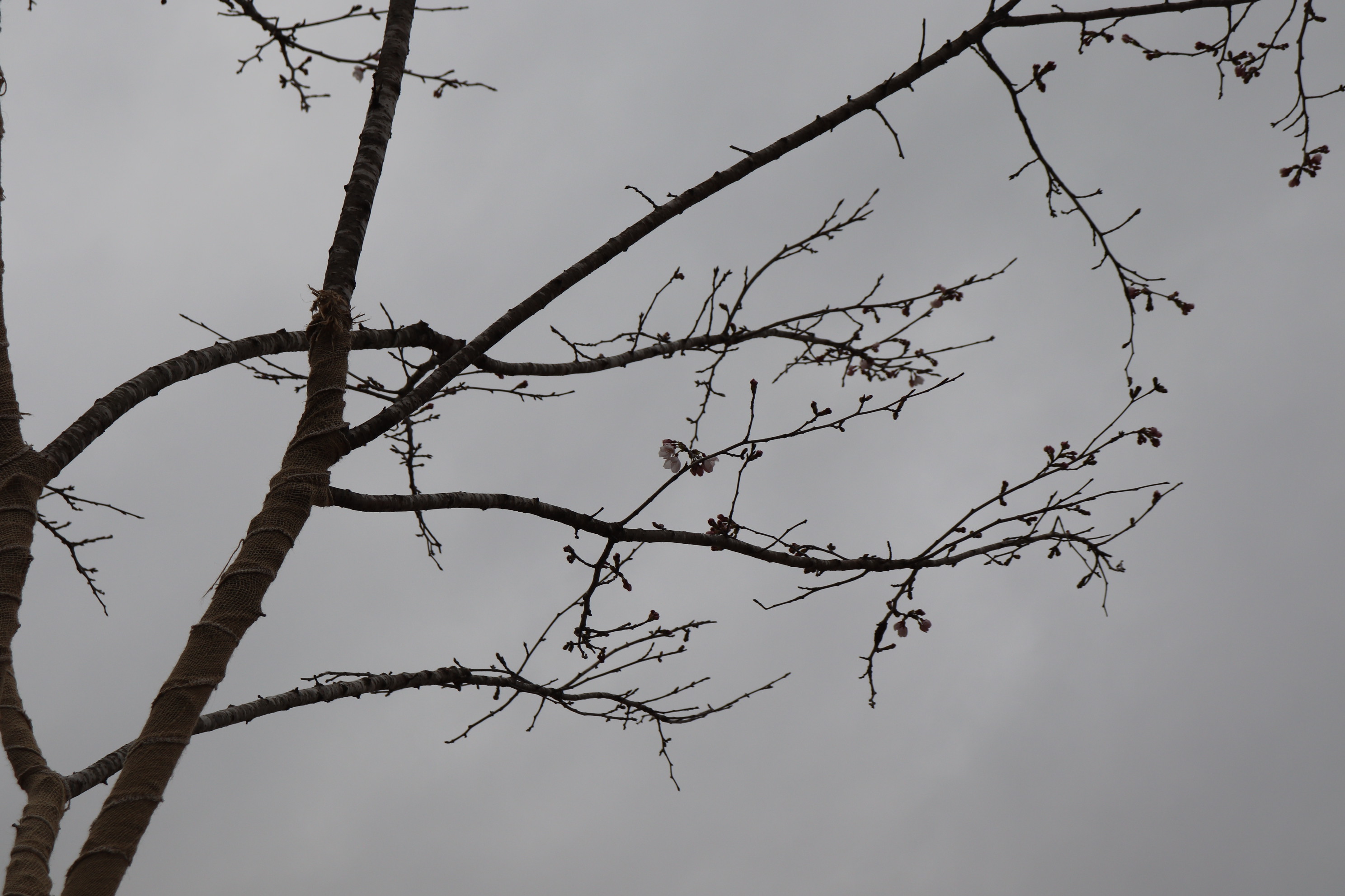 くもっており大変分かりにくいのですが、ぽつぽつと桜が咲いております😍🌸