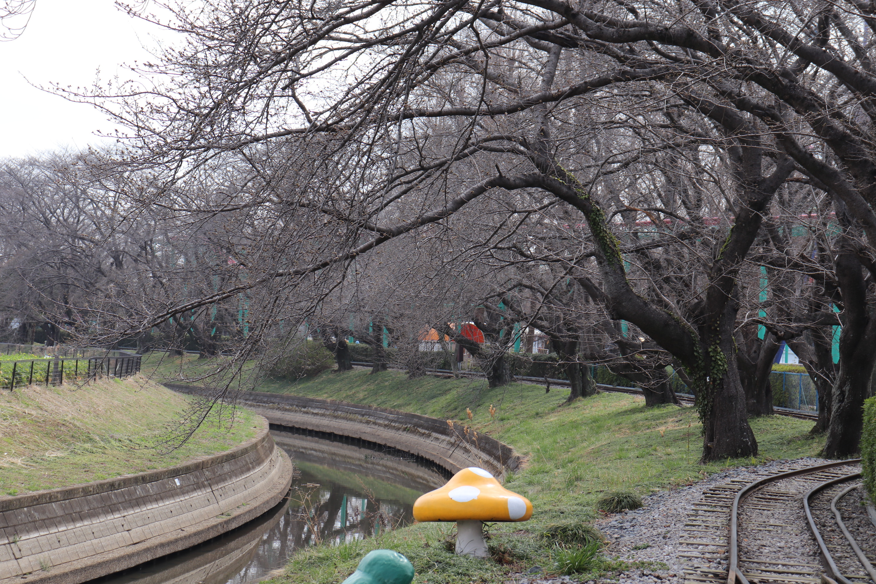 むさしの村鉄道が通る桜のトンネルはまだ咲いておりません🚞
