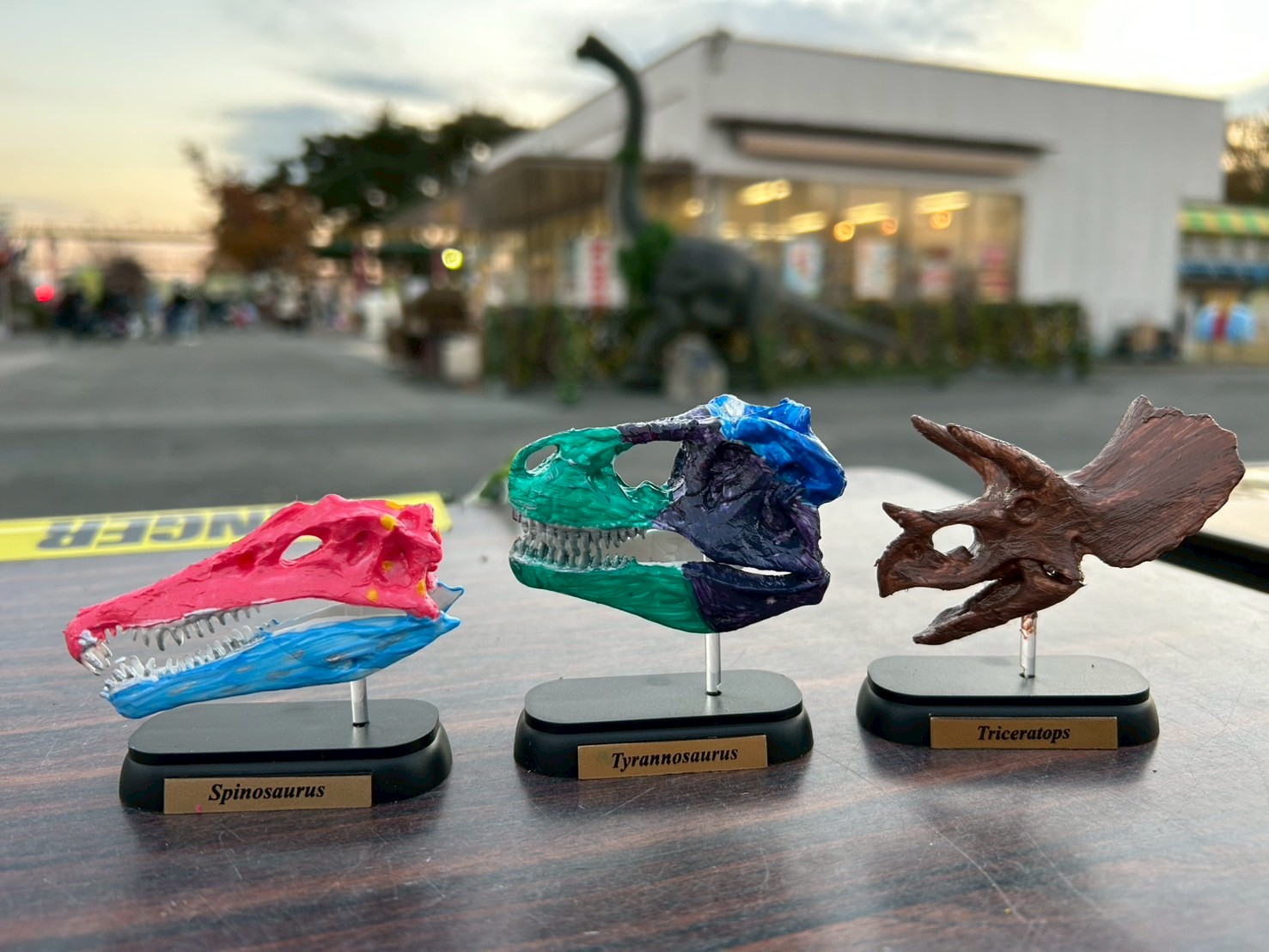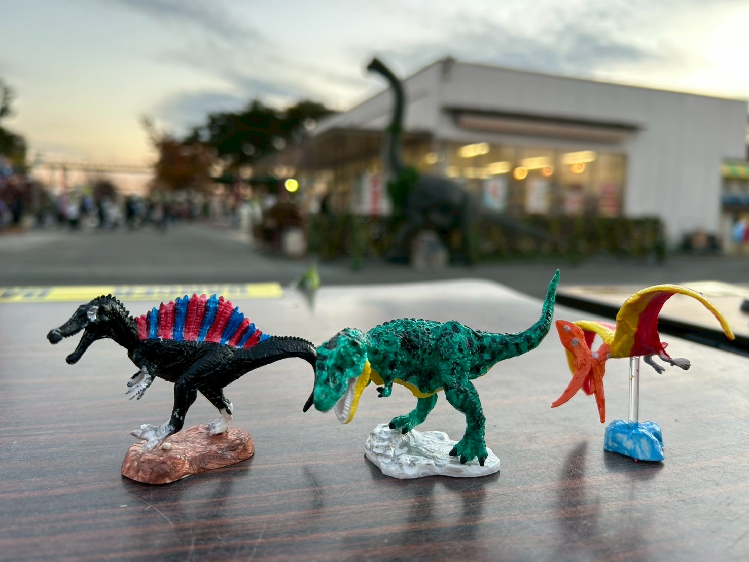 左からスピノサウルス、ティラノサウルス、プテラノドンの3種類!