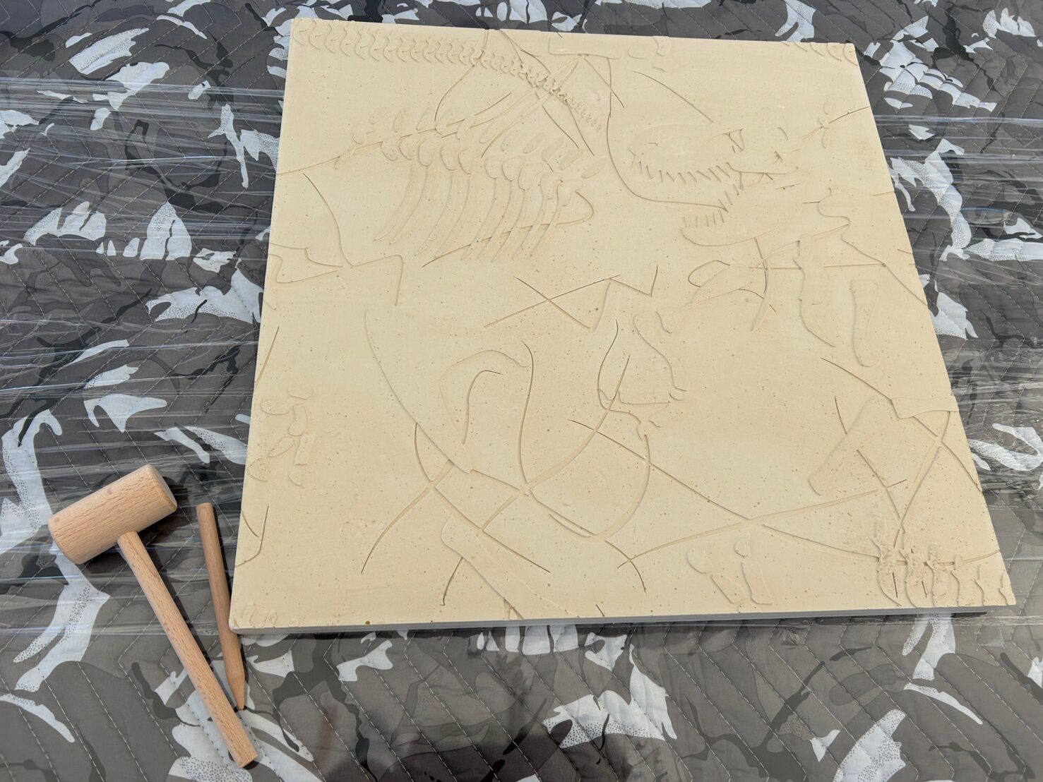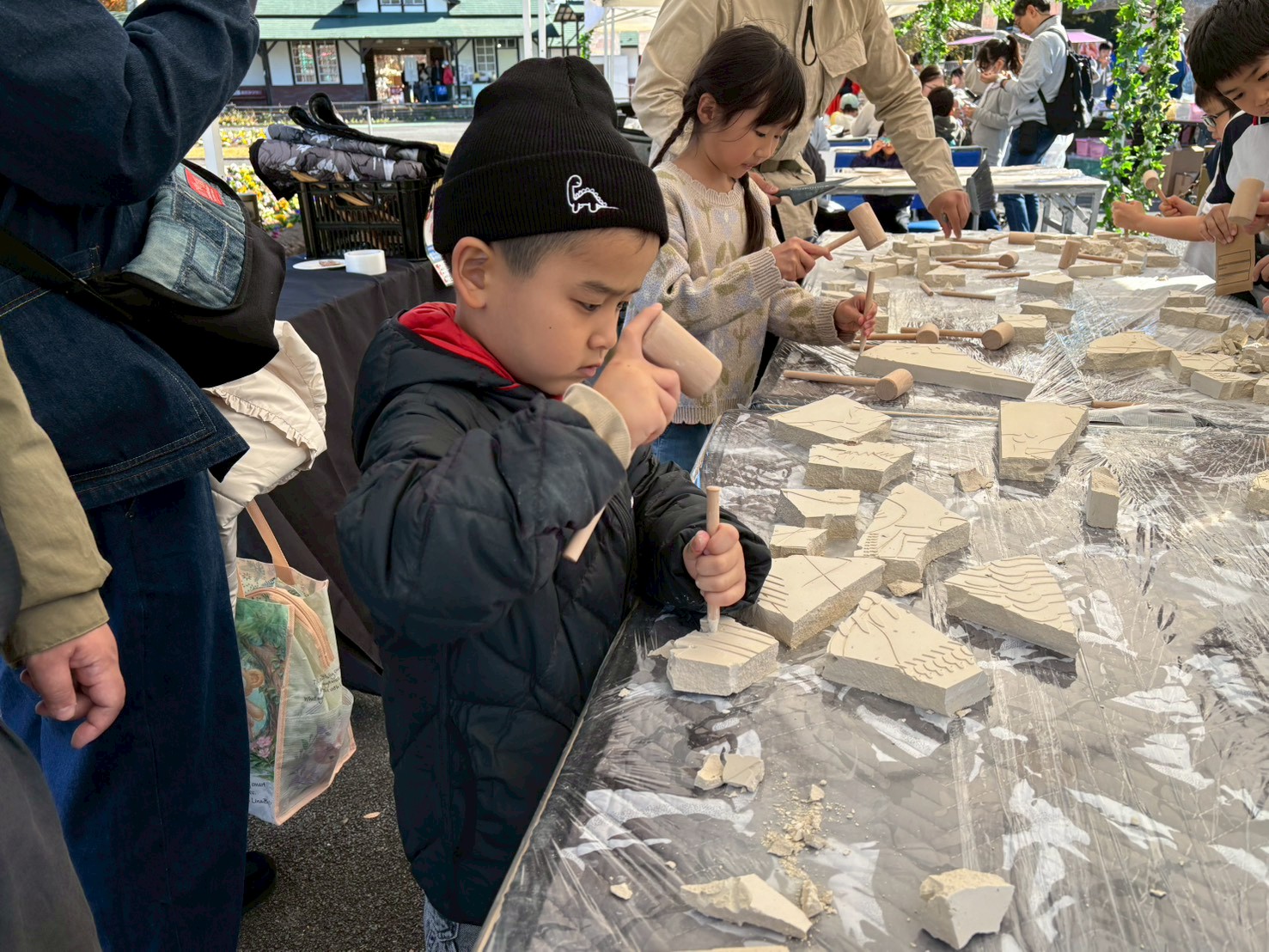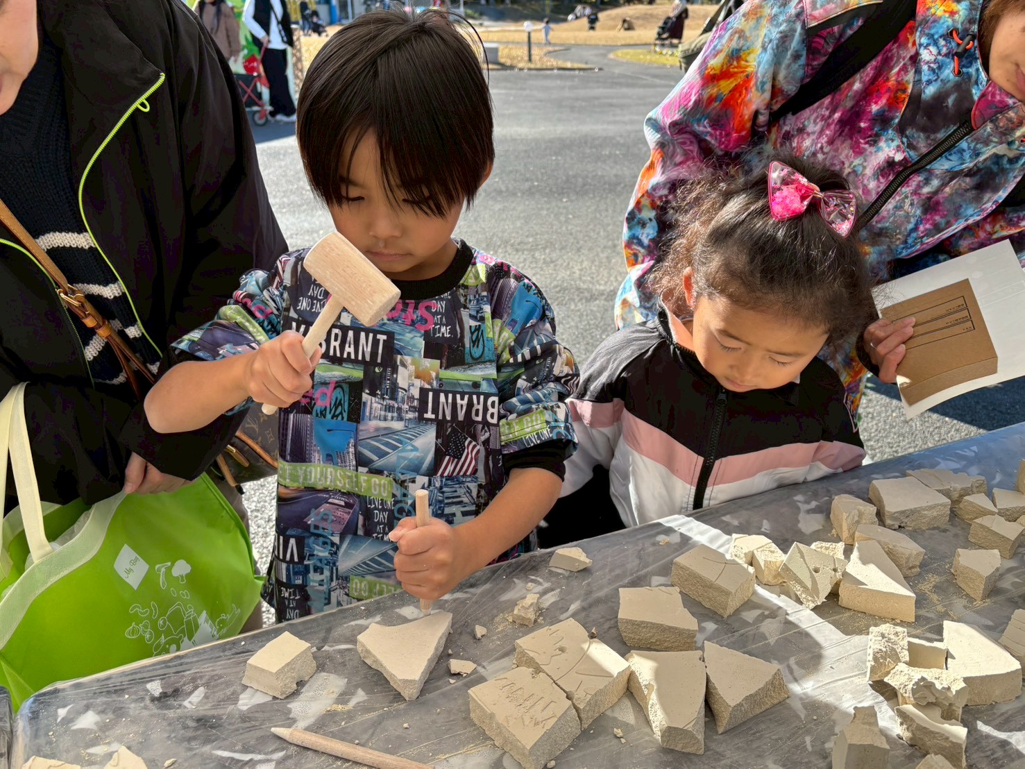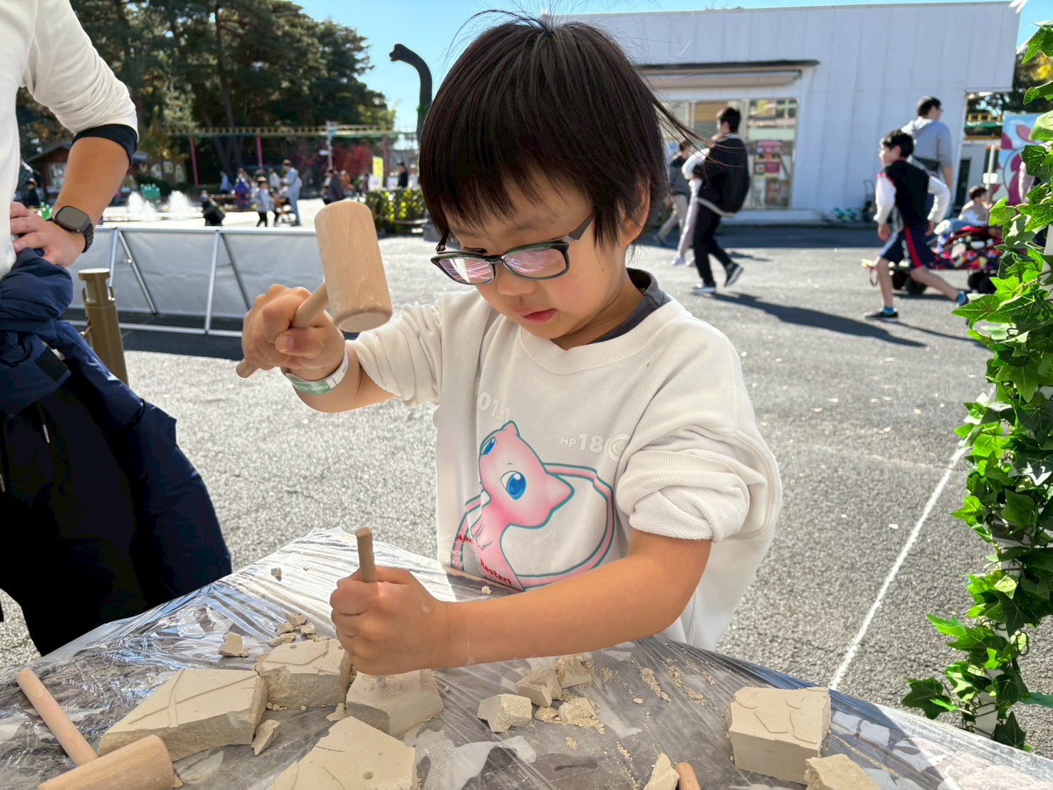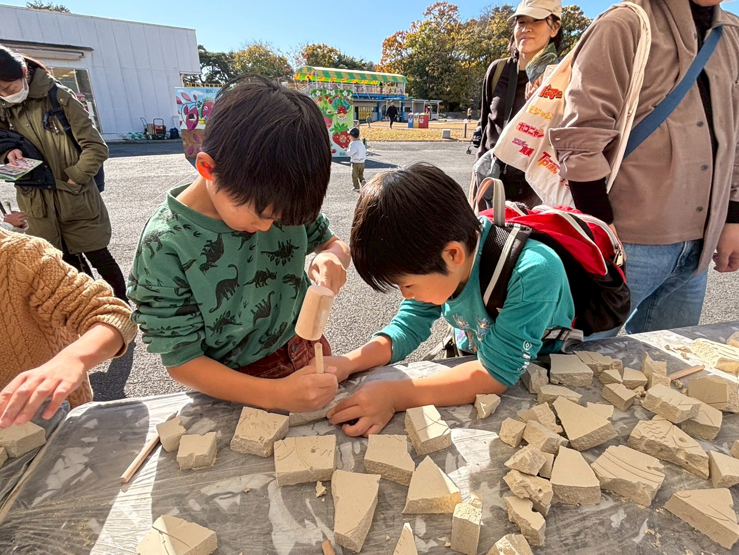 【化石発掘体験】ではブロックをハンマーで砕いて、化石を発掘していくよ🤩