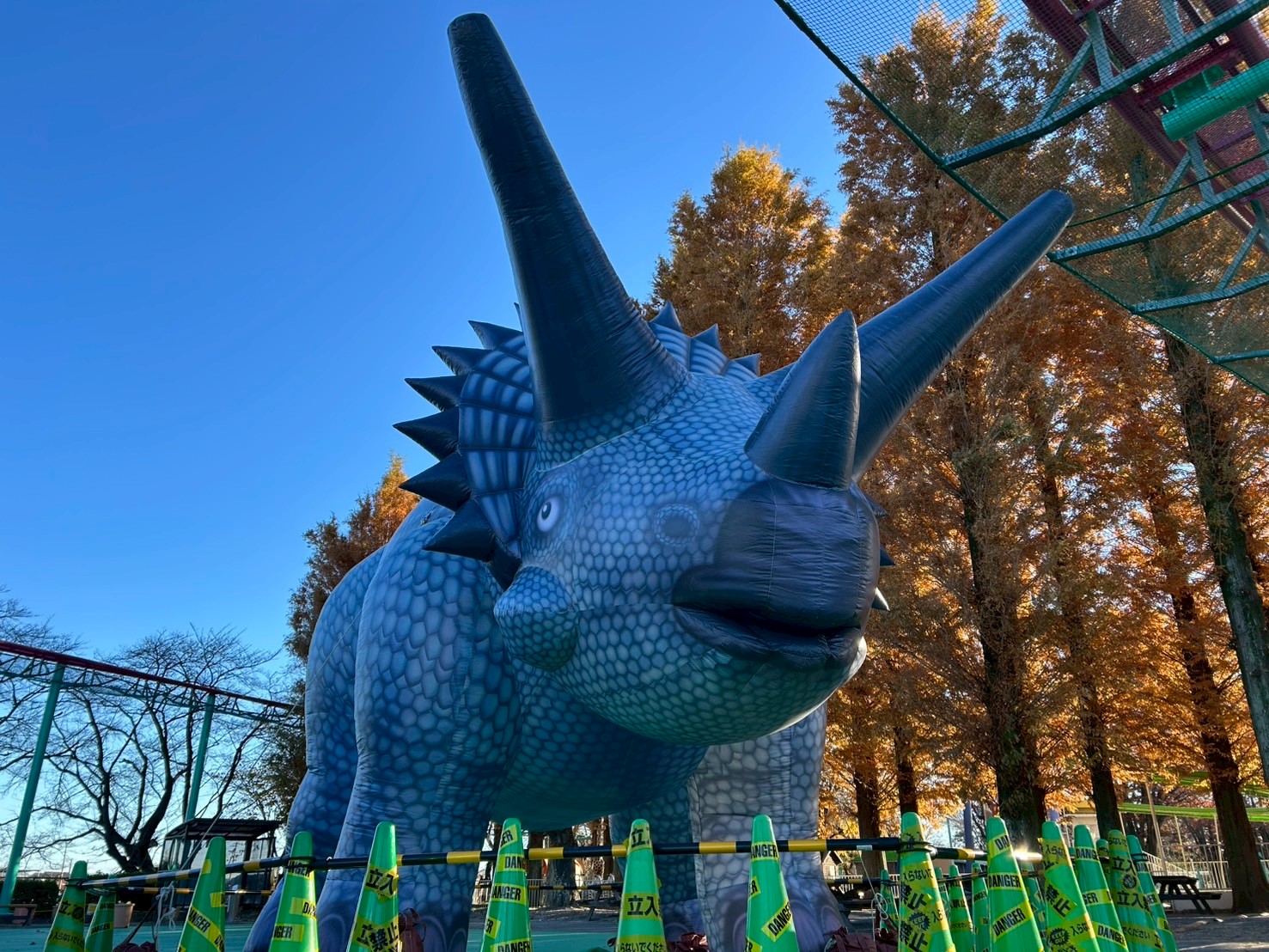 遊園地エリアには巨大トリケラトプスが登場😎大きな三本角がとってもかっこいいね!